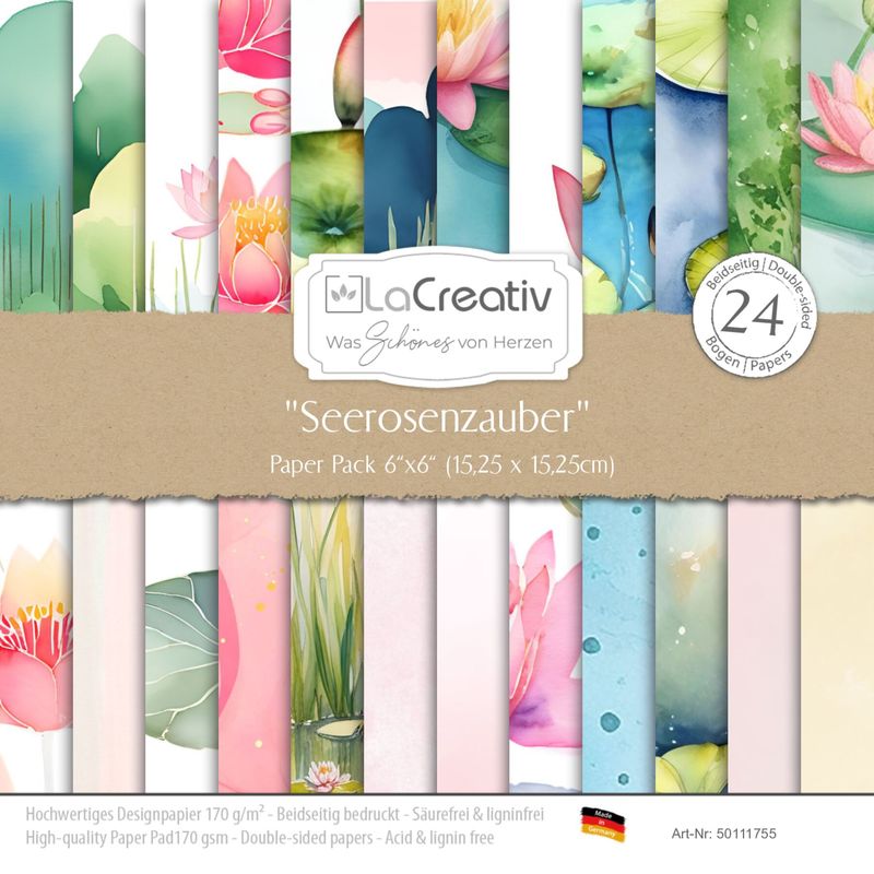 LaCreativ - Designpapier "Seerosenzauber" Paper Pack 6x6" - 24 Bogen